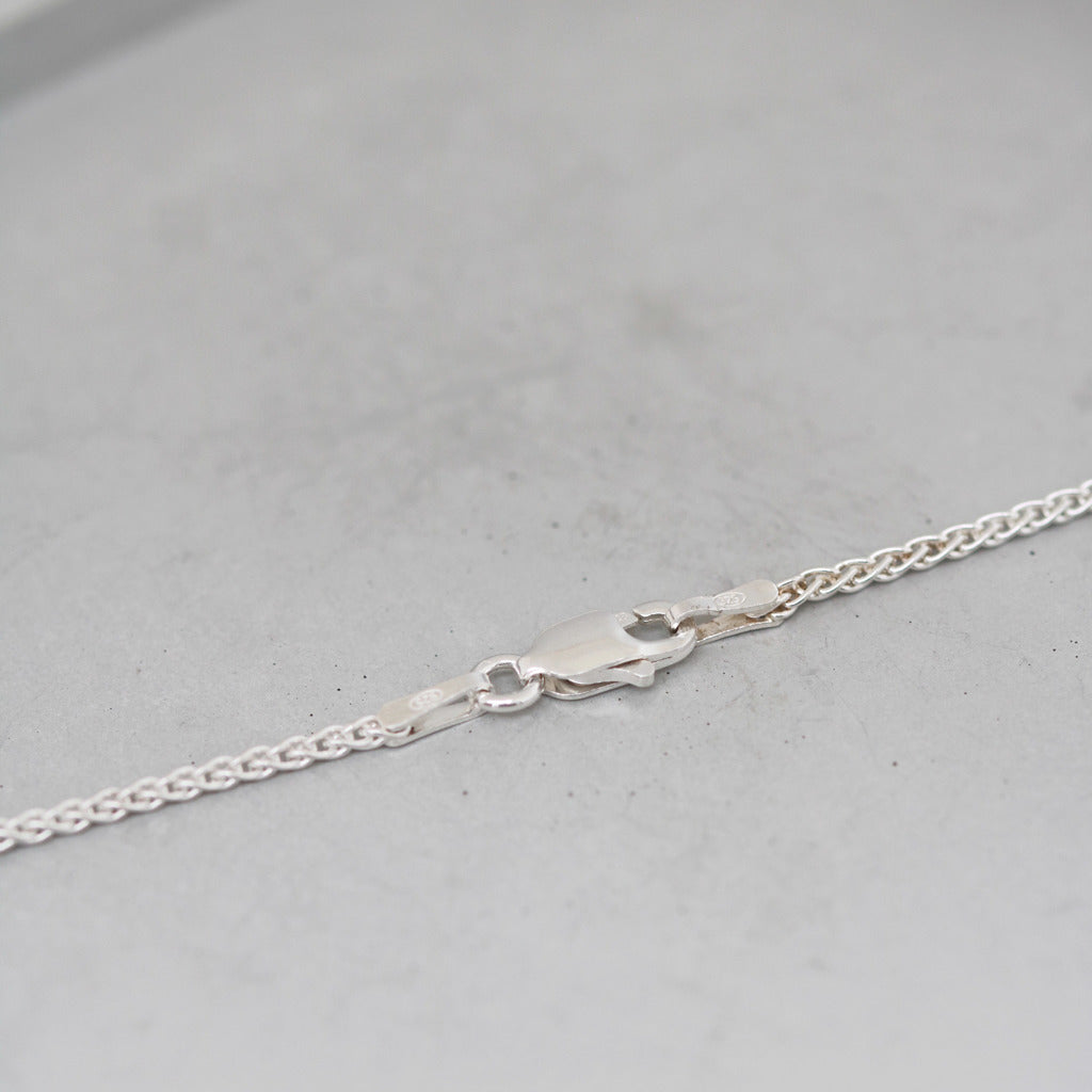 Solid Sterling Silver with an 18” 1.5mm Spiga chain