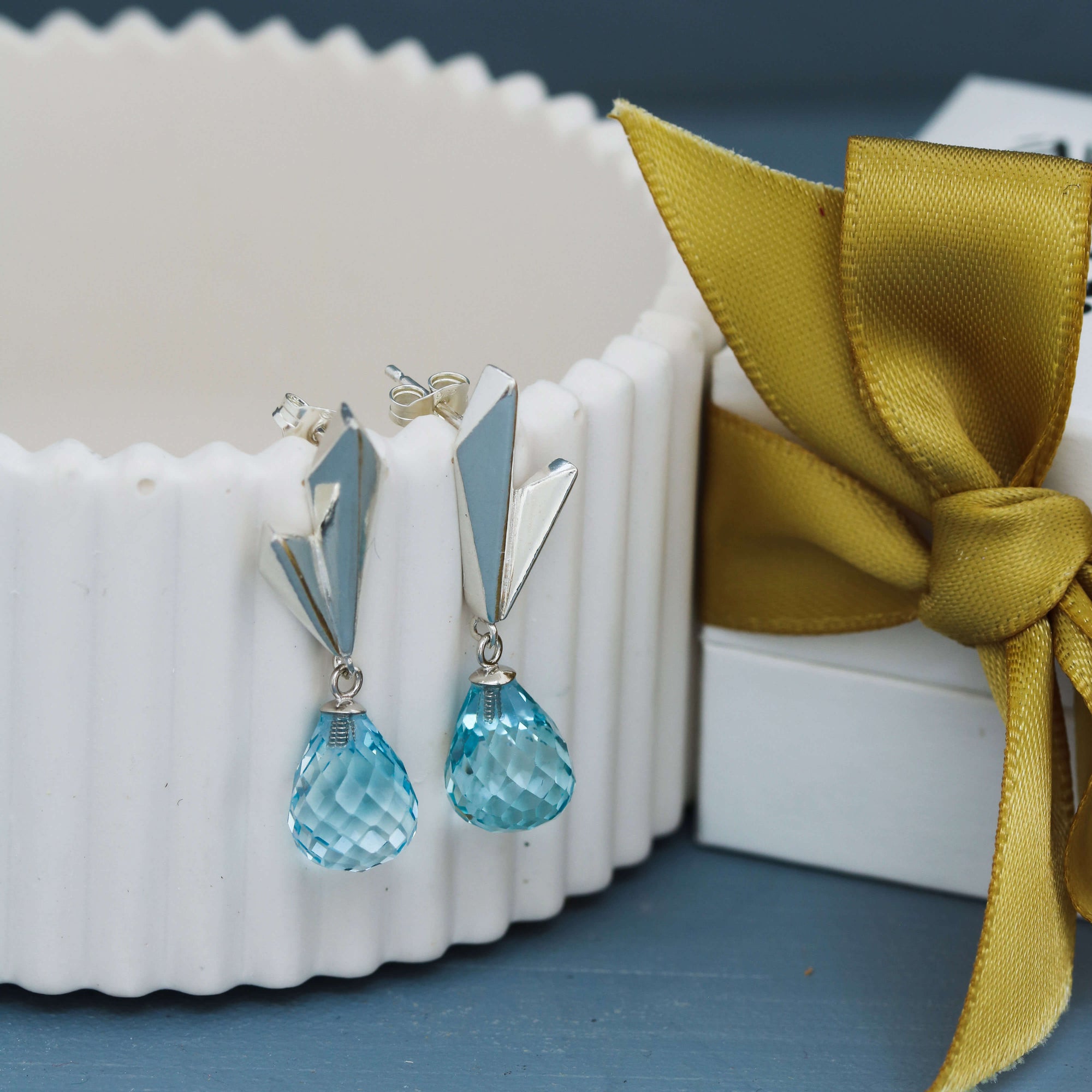 I chose a beautifully faceted Sky Blue Topaz for this design, a gemstone that sparkles like those crisp, bright blue winter skies. It’s vibrant, uplifting, and full of light — the perfect antidote to grey November days.