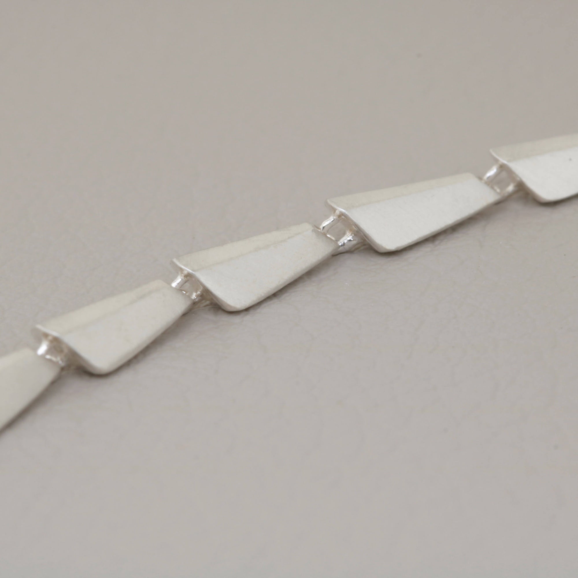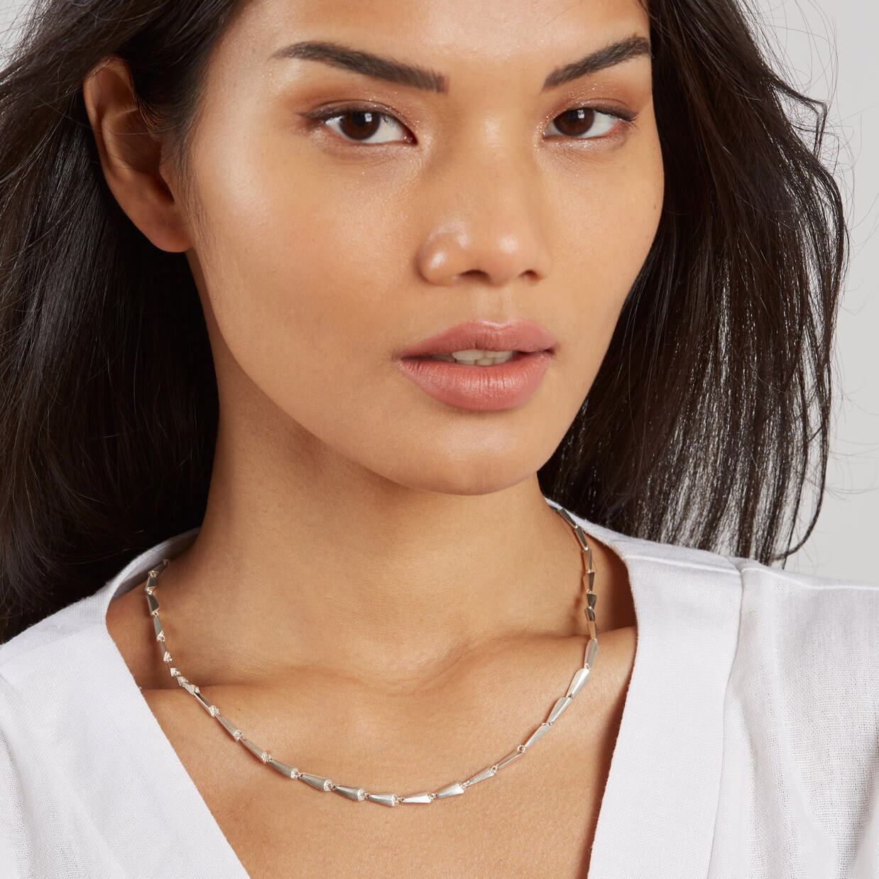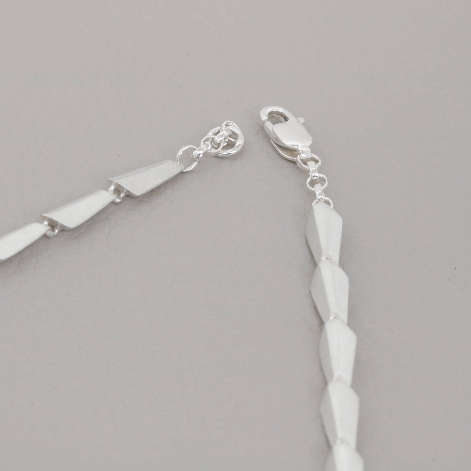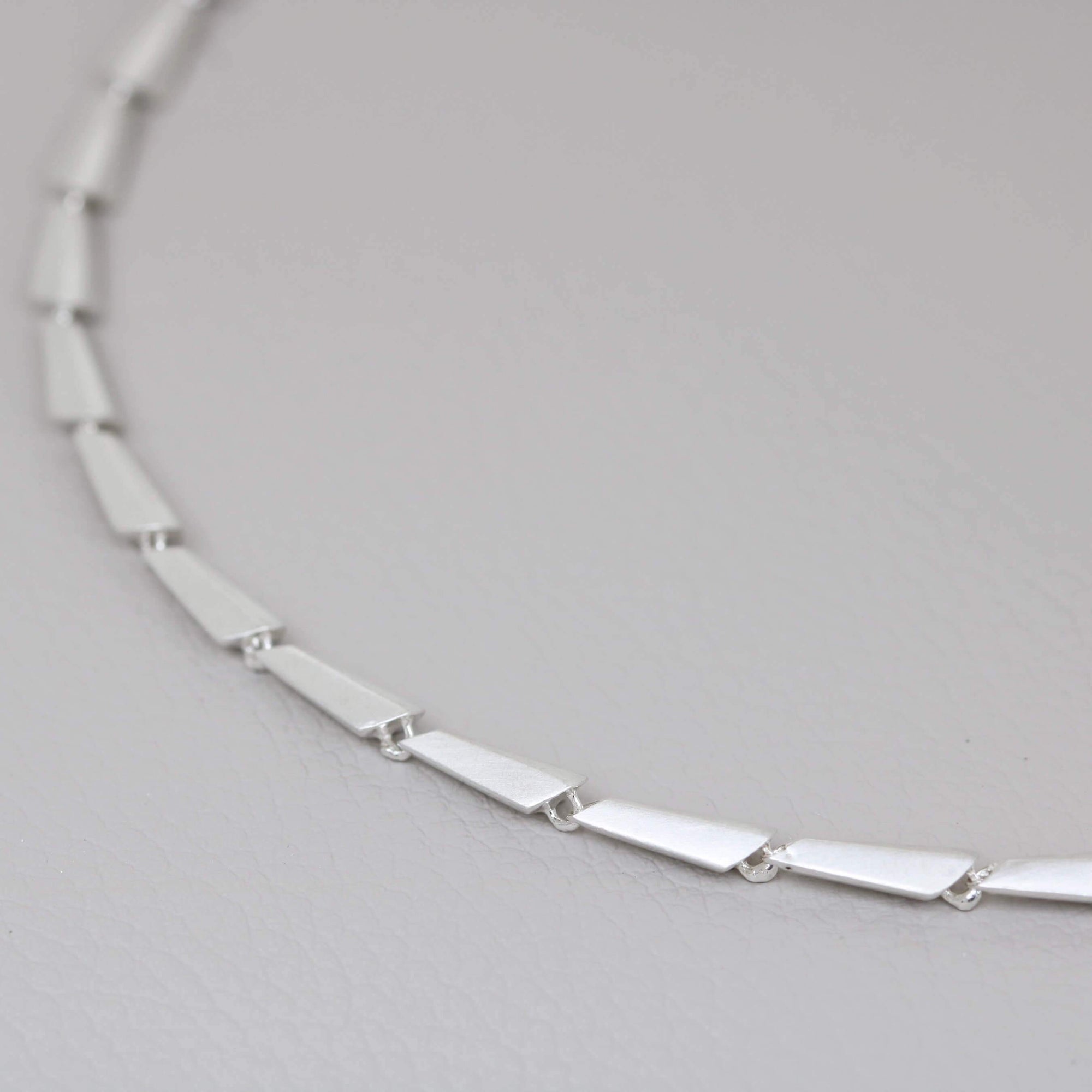 This elegant link necklace is a celebration of craftsmanship and timeless design. Inspired by the beauty of Art Deco geometry, this contemporary necklace is handmade in solid sterling silver, featuring a continuous pattern of sculptural links that catch the light beautifully. Each section has been individually cast to create a unique flowing movement, making it the perfect statement piece for everyday wear or special occasions.