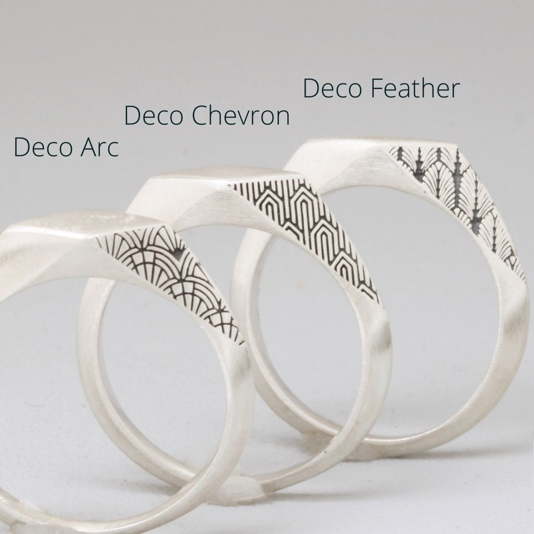 This art deco signet ring combines vintage design with modern styling, making it an effortless everyday piece. The deep-engraved chevron pattern creates a striking and unique accessory that will stand the test of time.