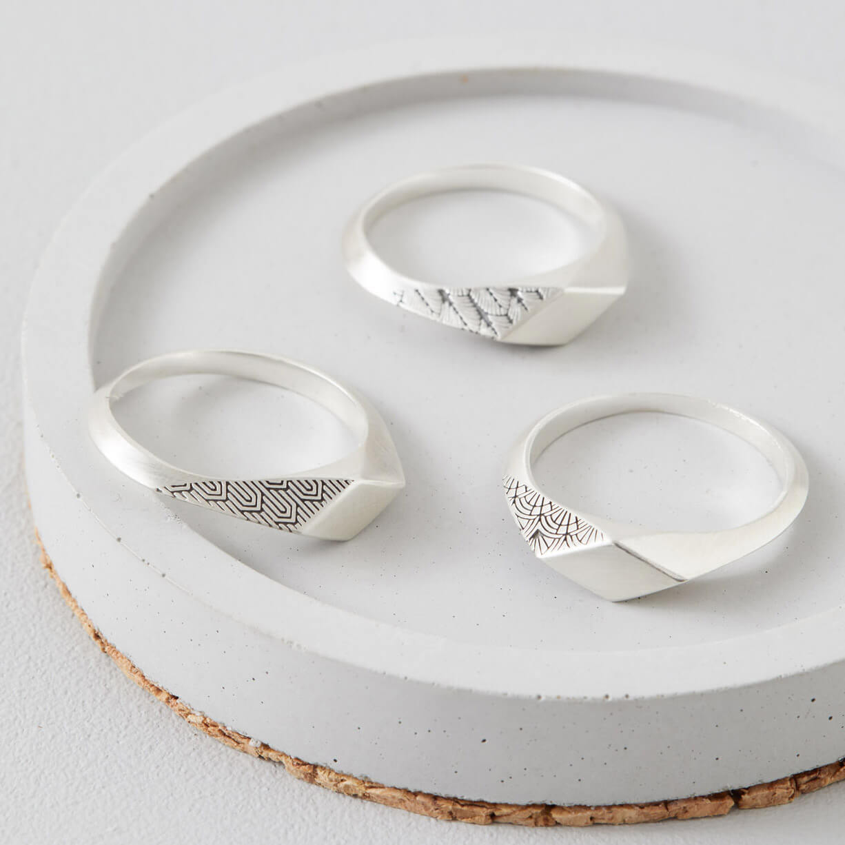 Handmade in solid sterling silver, this signet ring is an elegant choice for those who love geometric jewellery with a vintage edge. A meaningful and stylish gift for her, this is a jewellery box essential.