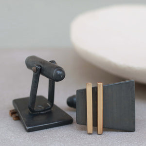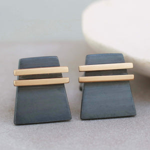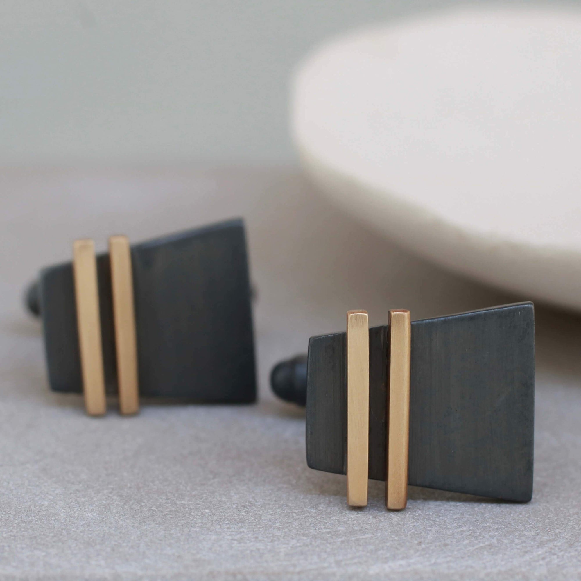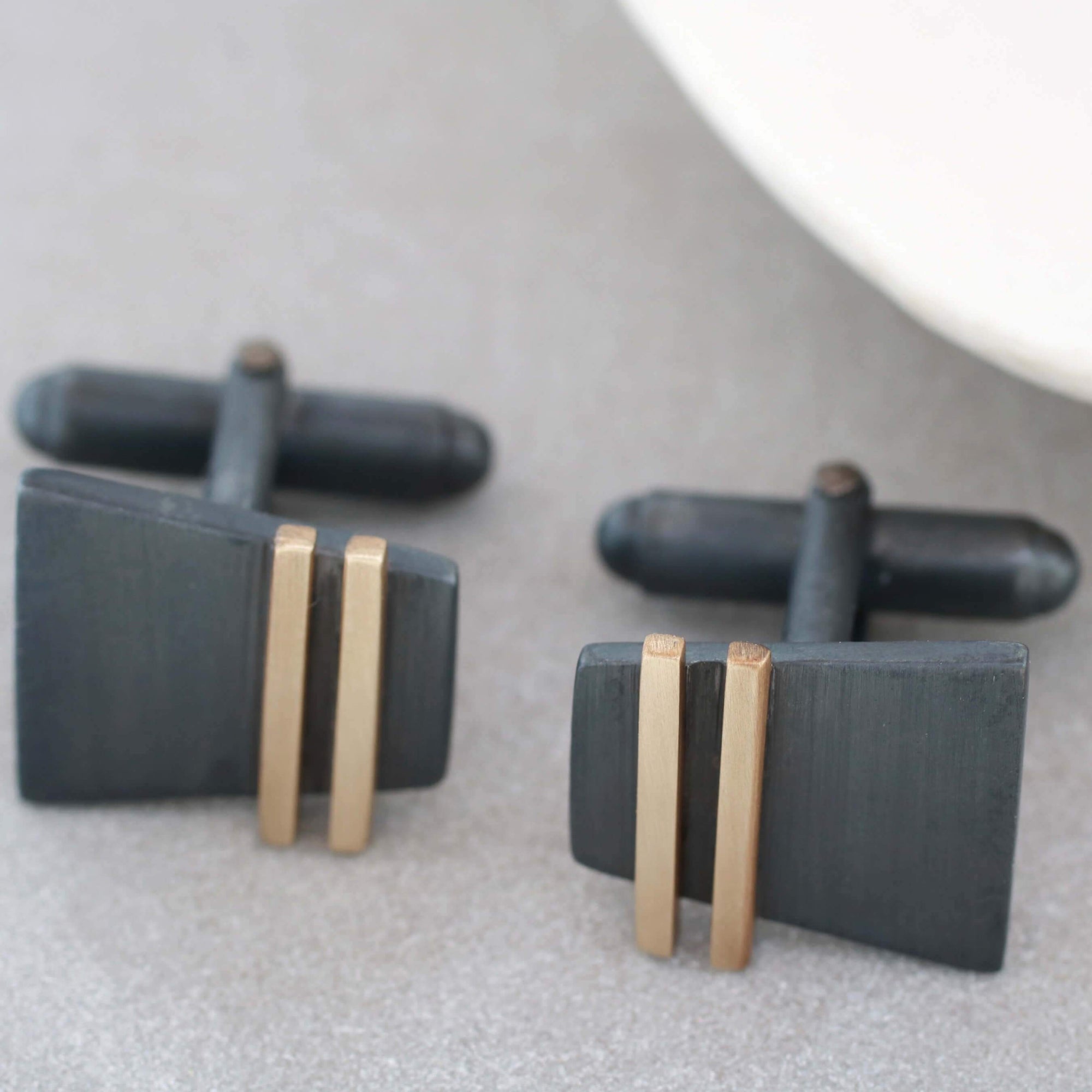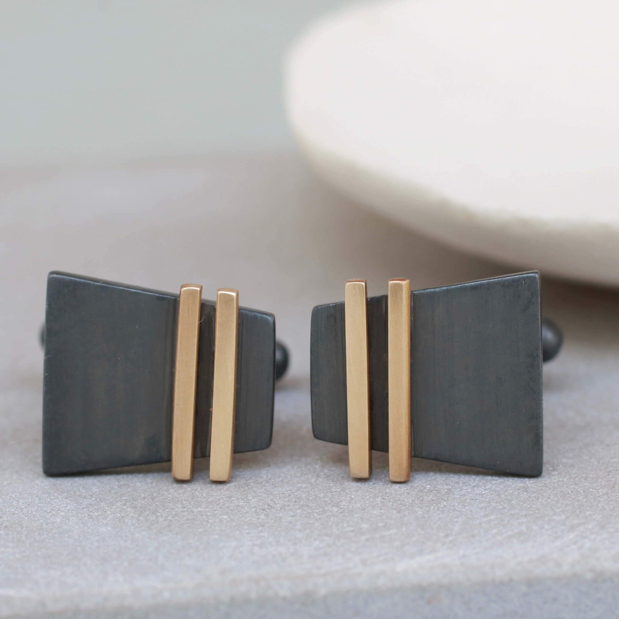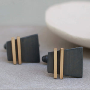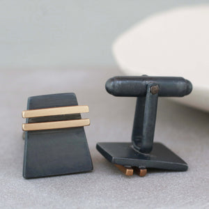I designed these cufflinks to combine contemporary style with a nod to Art Deco geometry, resulting in a pair that feels modern yet timeless. The contrast between the oxidised silver and the warm gold stripe gives them a distinctive look that works for both everyday wear and special occasions. They make an effortless and lasting gift for someone who appreciates detail, craftsmanship and understated luxury.