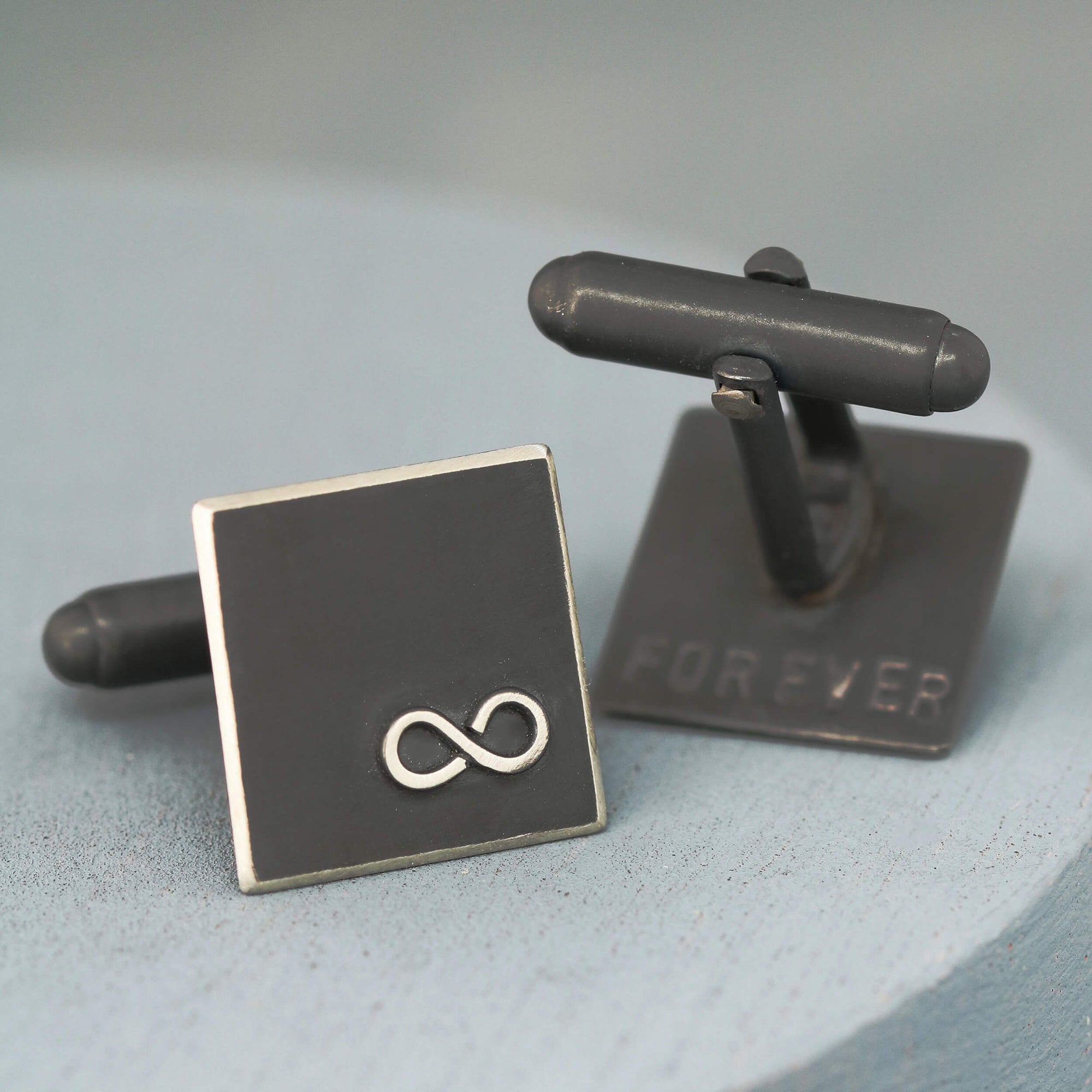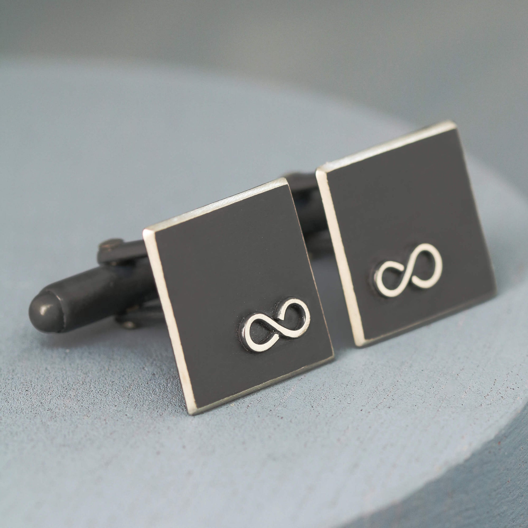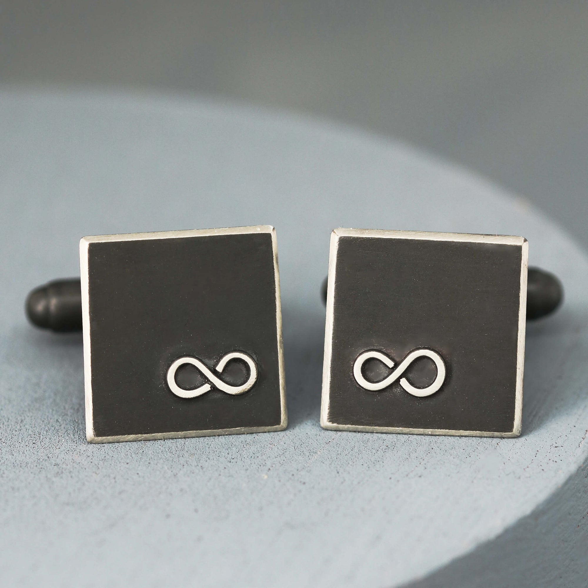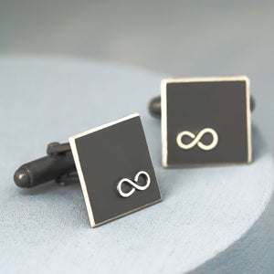 Sterling silver infinity cufflinks with oxidised matte black finish