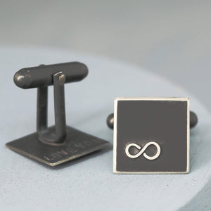Crafted in sterling silver and finished with a deep black oxidised surface, the silver edges and infinity symbol gleam subtly, creating a striking contrast. Whether you’re shopping for a wedding day keepsake, a gift for your partner, or a stylish yet personal Father’s Day gesture, these cufflinks hold real sentiment. Add a secret message on the reverse – just for him – to make them truly one of a kind.