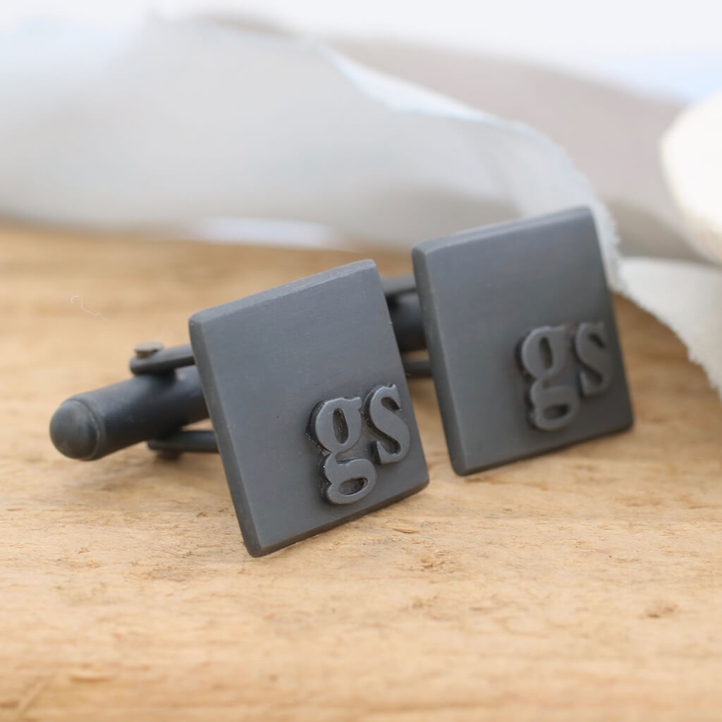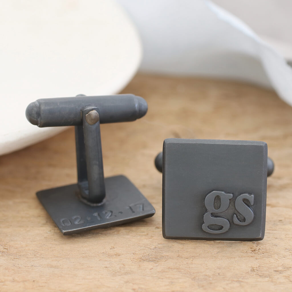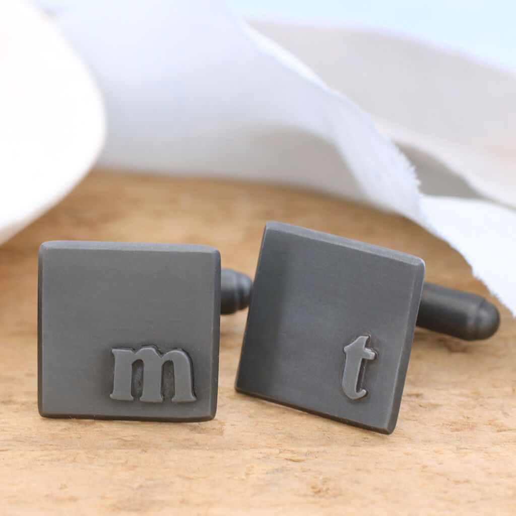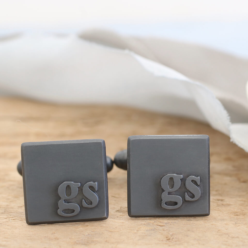 Initial cufflinks don’t get more meaningful than these – made in sterling silver with a matte black finish, and customised with your chosen letters and message.