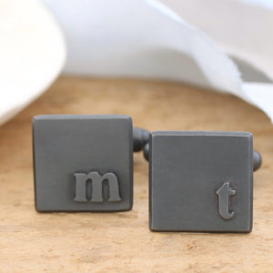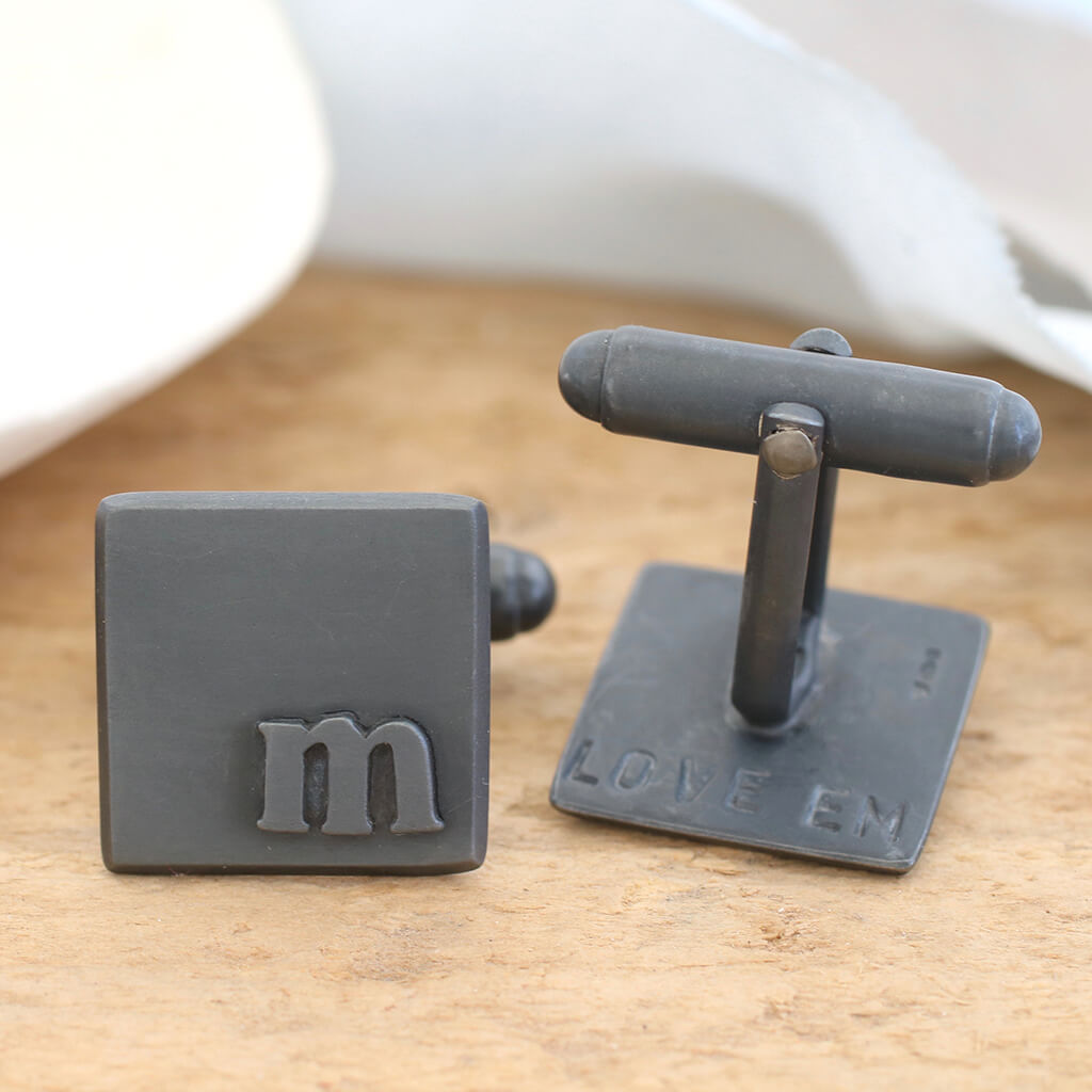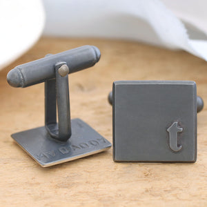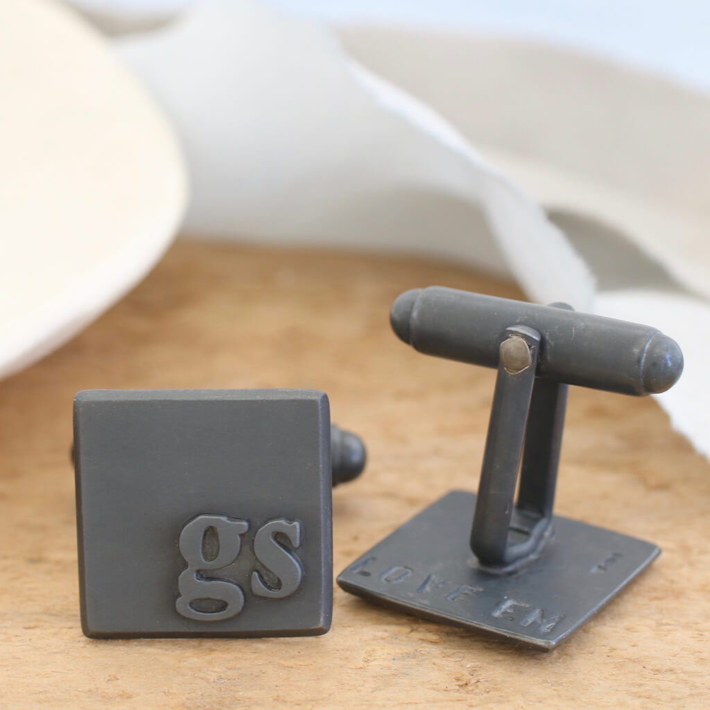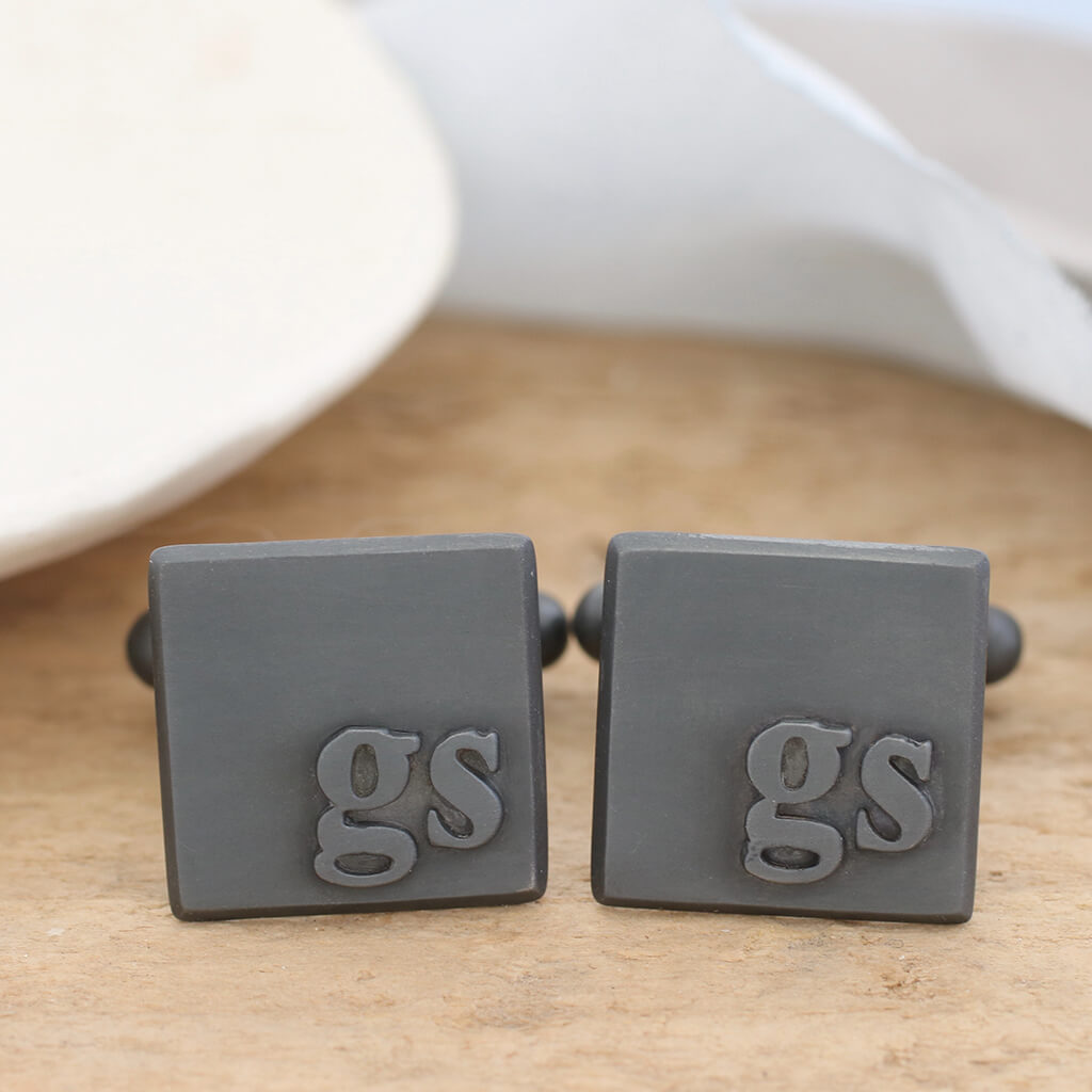 Initial cufflinks don’t get more meaningful than these – made in sterling silver with a matte black finish, and customised with your chosen letters and message.