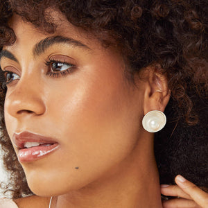 The larger size of this design (it measures 22mm in diameter) creates a pair of stud earrings that really makes a statement. The large dome gives the large 10mm pearl room to really draw focus, almost as if it is directing the eye to the centre piece.