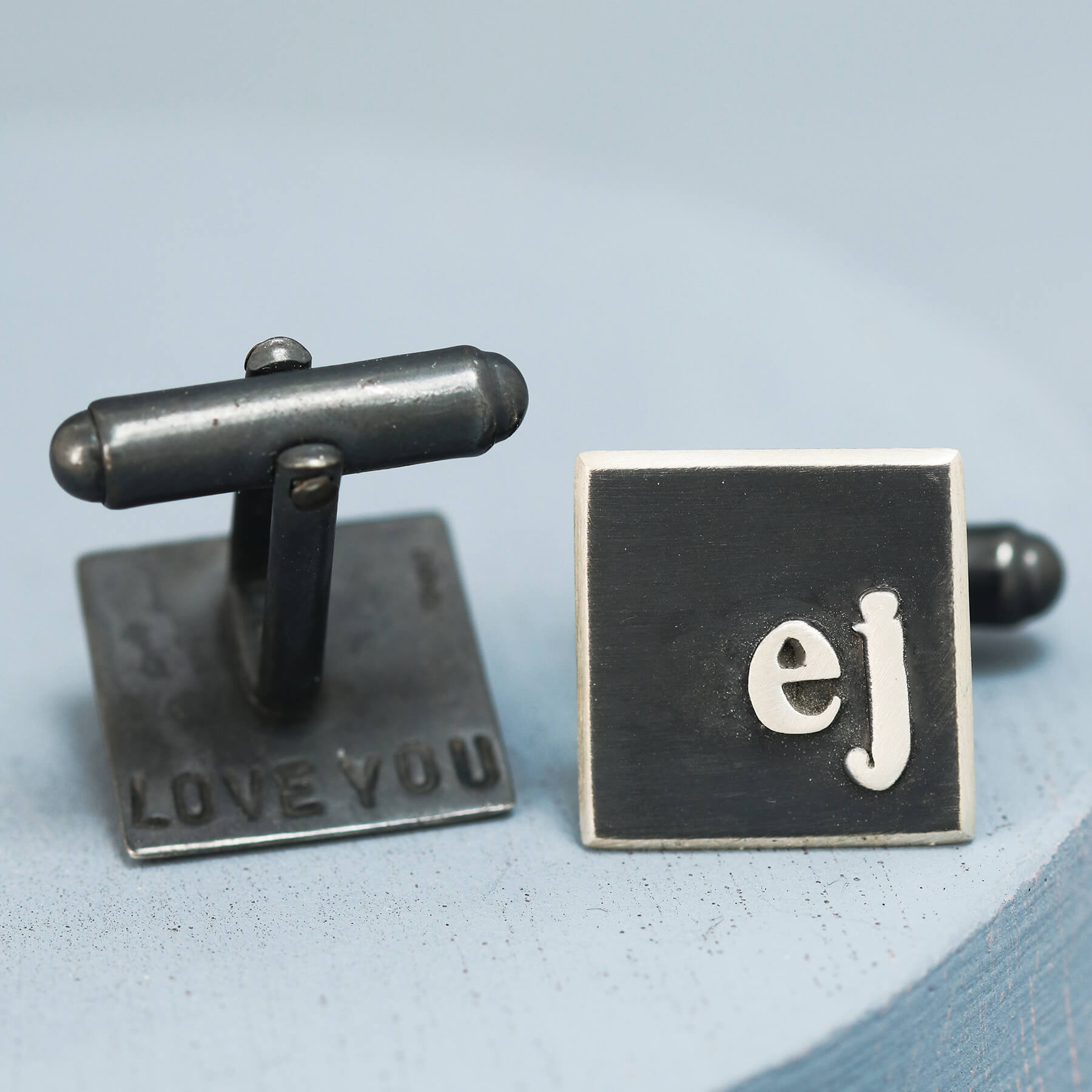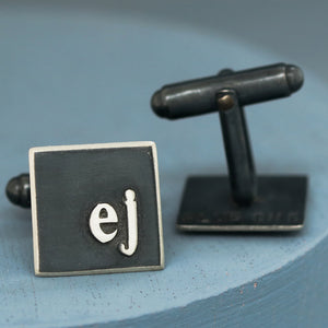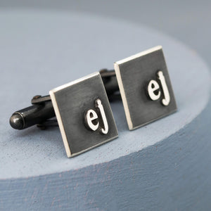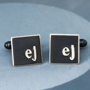 These sterling silver cufflinks have been oxidised to a deep matte black, creating a sleek contrast that suits any style. Whether you're gifting for a wedding, graduation, milestone birthday or anniversary, these silver cufflinks with initials are a stylish and thoughtful way to mark the moment.