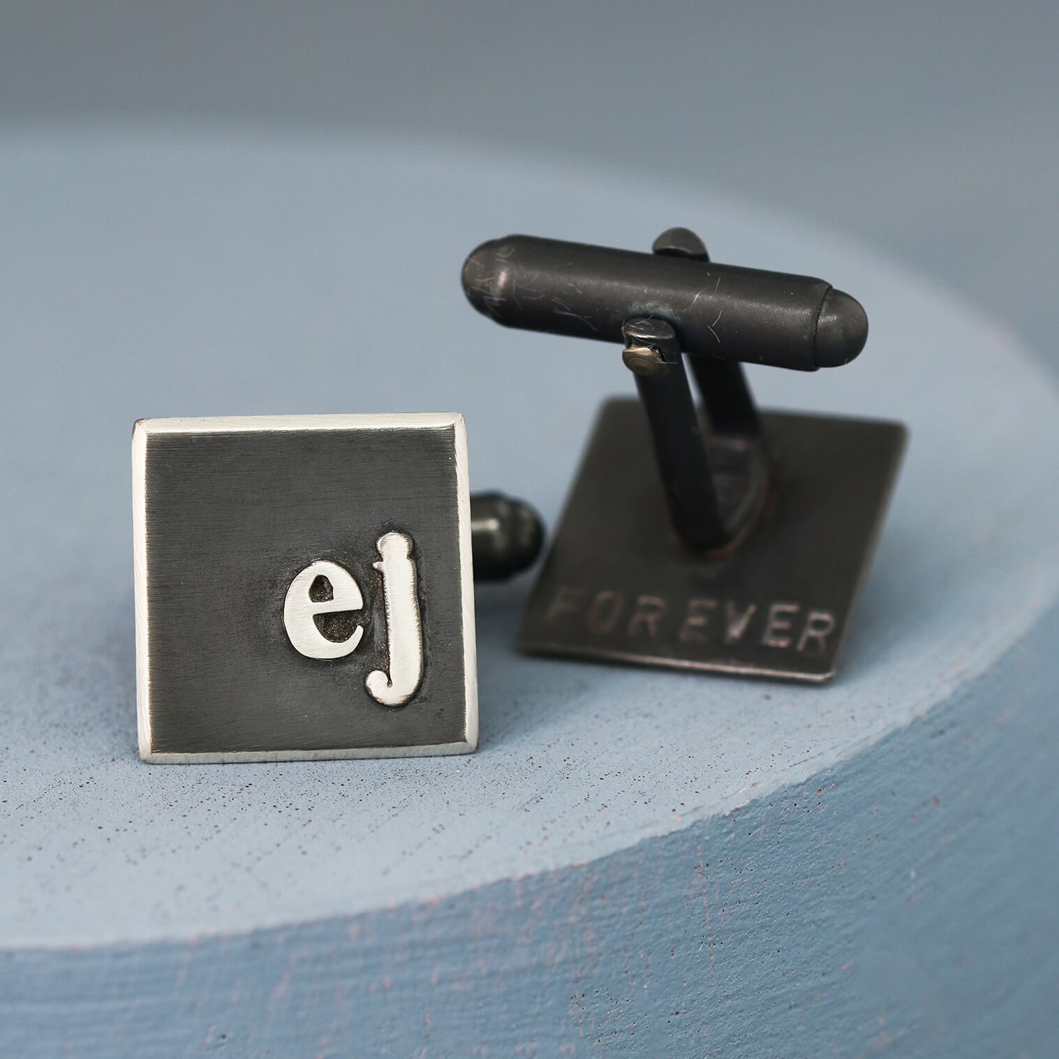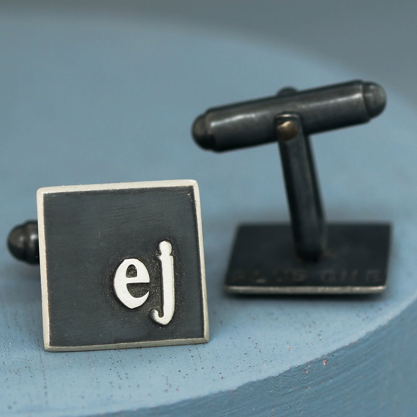 • Sterling silver cufflinks with initials, oxidised for a bold, modern contrast finish