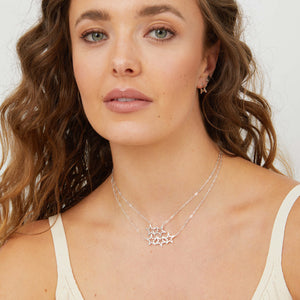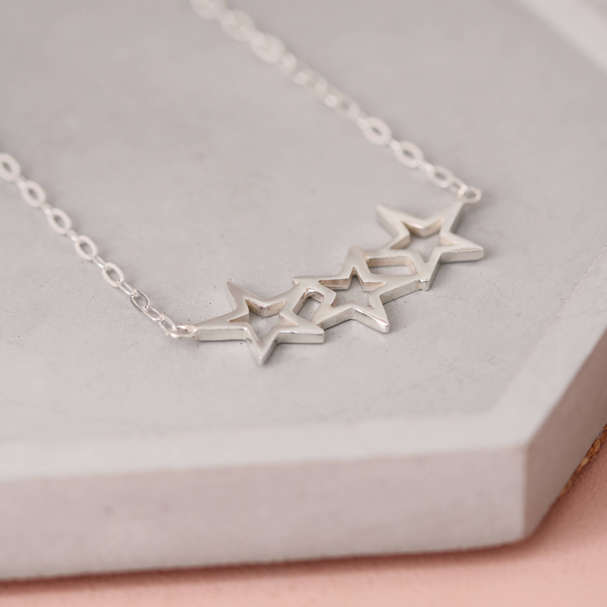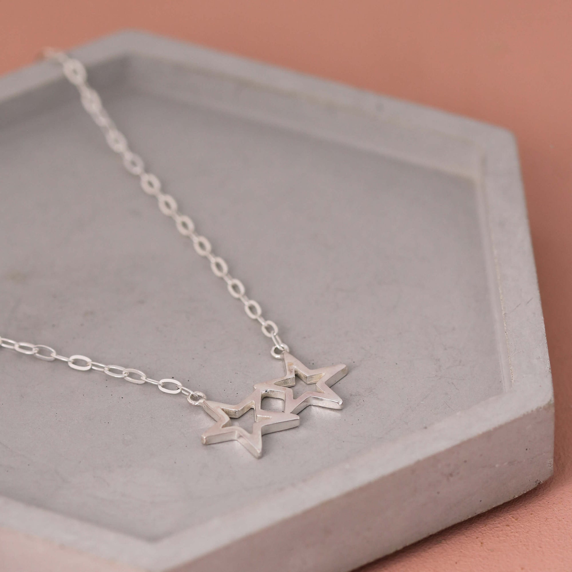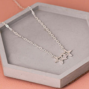 My multi star necklace features either two or three elegantly arranged stars on an 18-inch chain, handcrafted in sterling silver. The 3 star necklace option adds an extra layer of significance, representing cherished connections with loved ones. Both designs make thoughtful gifts or delightful additions to your jewellery collection.