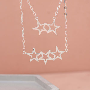 Introducing my stunning multi star necklace, a beautiful piece that captures the enchanting allure of the stars. Handcrafted in solid sterling silver, this necklace features either two or three elegantly suspended stars on an 18-inch chain, making it a perfect accessory for any occasion, day or night.
