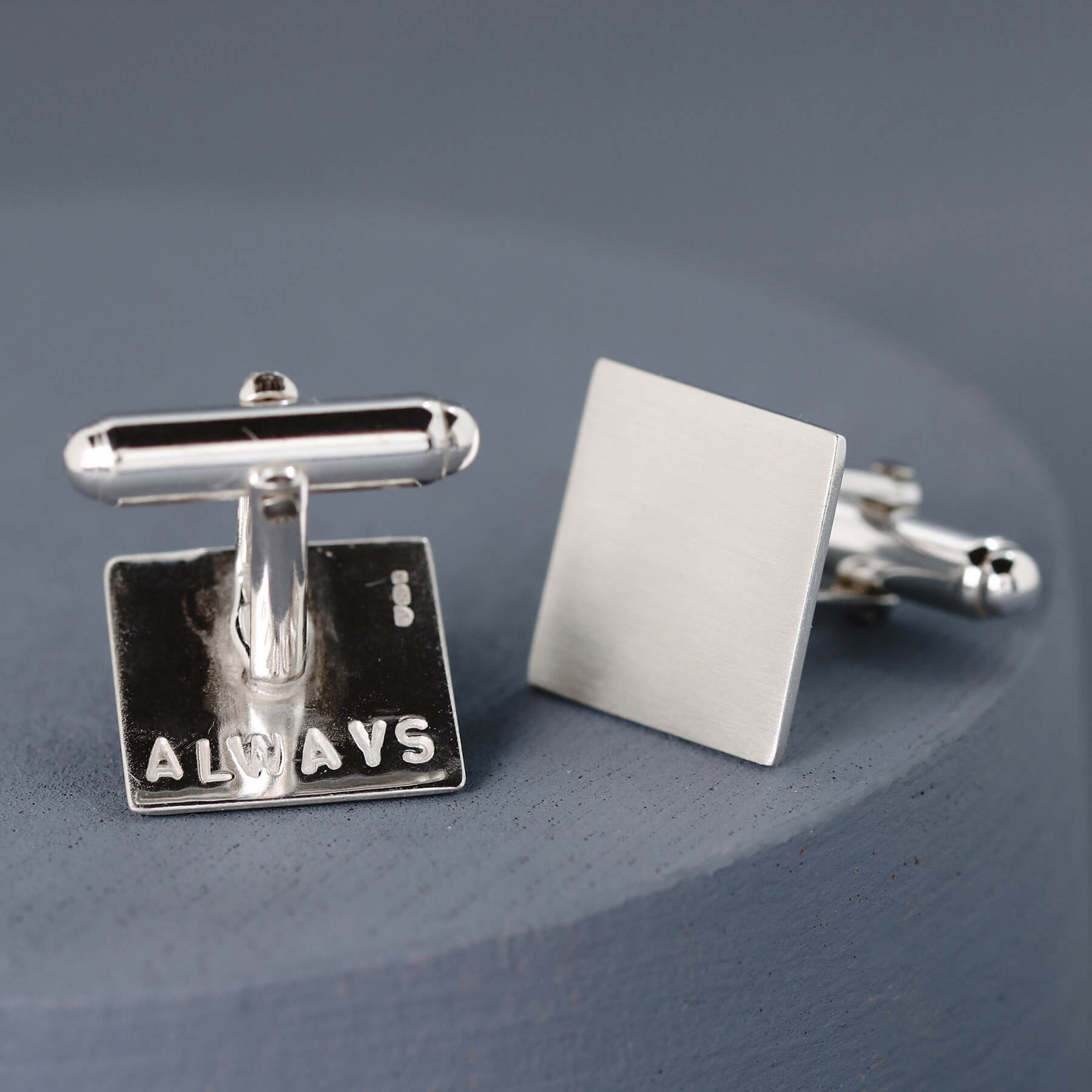 Searching for personalised cufflinks sterling silver that are both classic and meaningful? These handmade cufflinks are simple and understated on the front, but secretly stamped on the reverse with a message just for him — making them the perfect surprise anniversary gifts for husband.