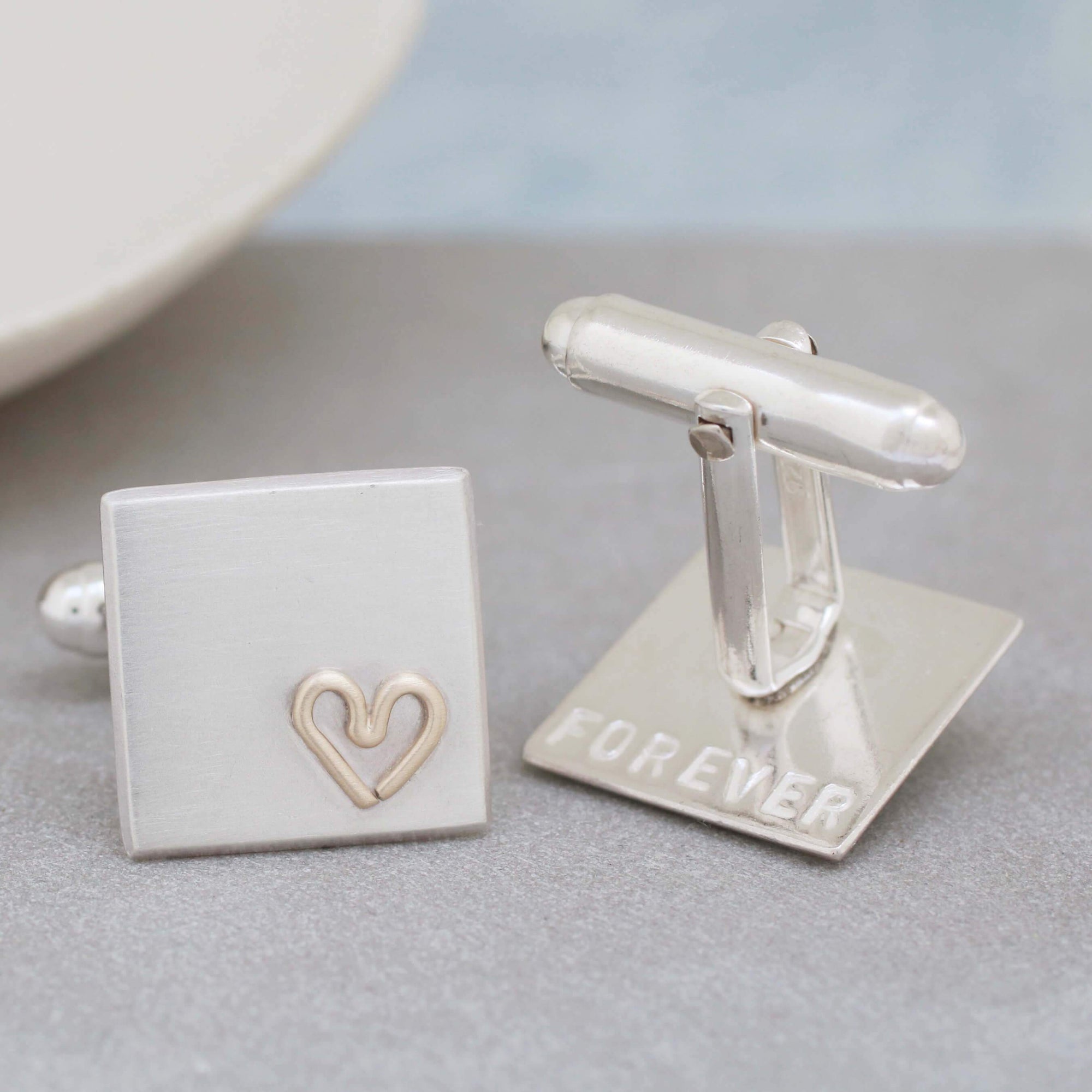 Celebrate love and commitment with these Custom cufflinks for groom, beautifully handcrafted in solid sterling silver and accented with a 9ct gold heart. A symbol of devotion and partnership, these elegant cufflinks make a truly thoughtful gift for husband — whether it’s your wedding day, an anniversary, or simply a reminder of your love.
