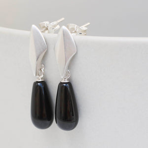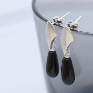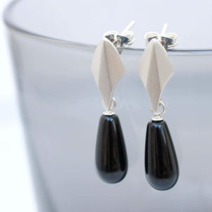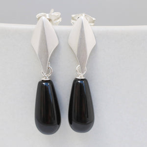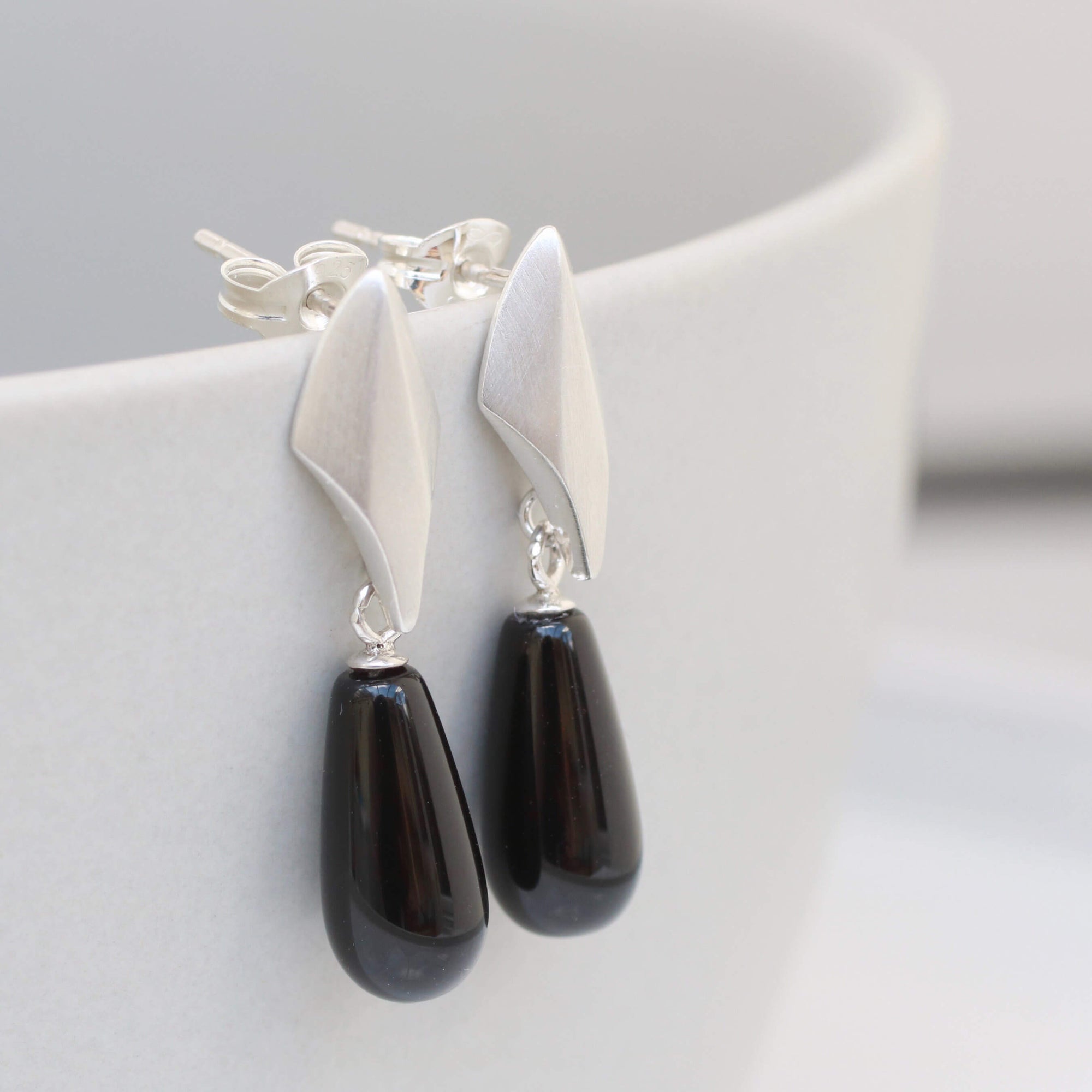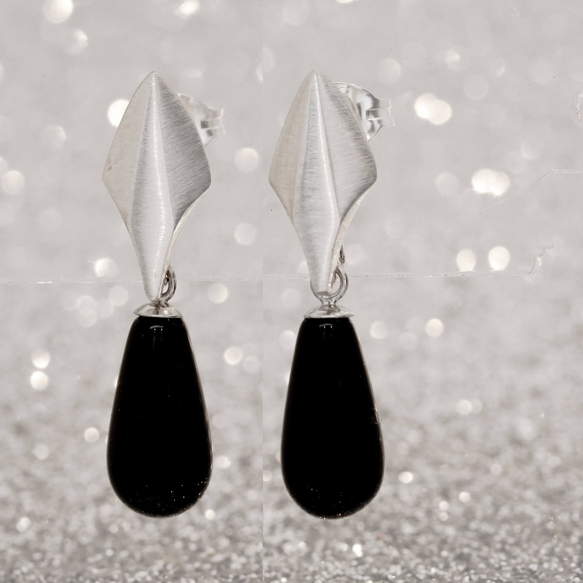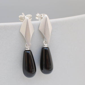 Sterling Silver and onyx dropper earrings, geometric stud dangle earrings make perfect bridal earrings or everyday earrings for her.