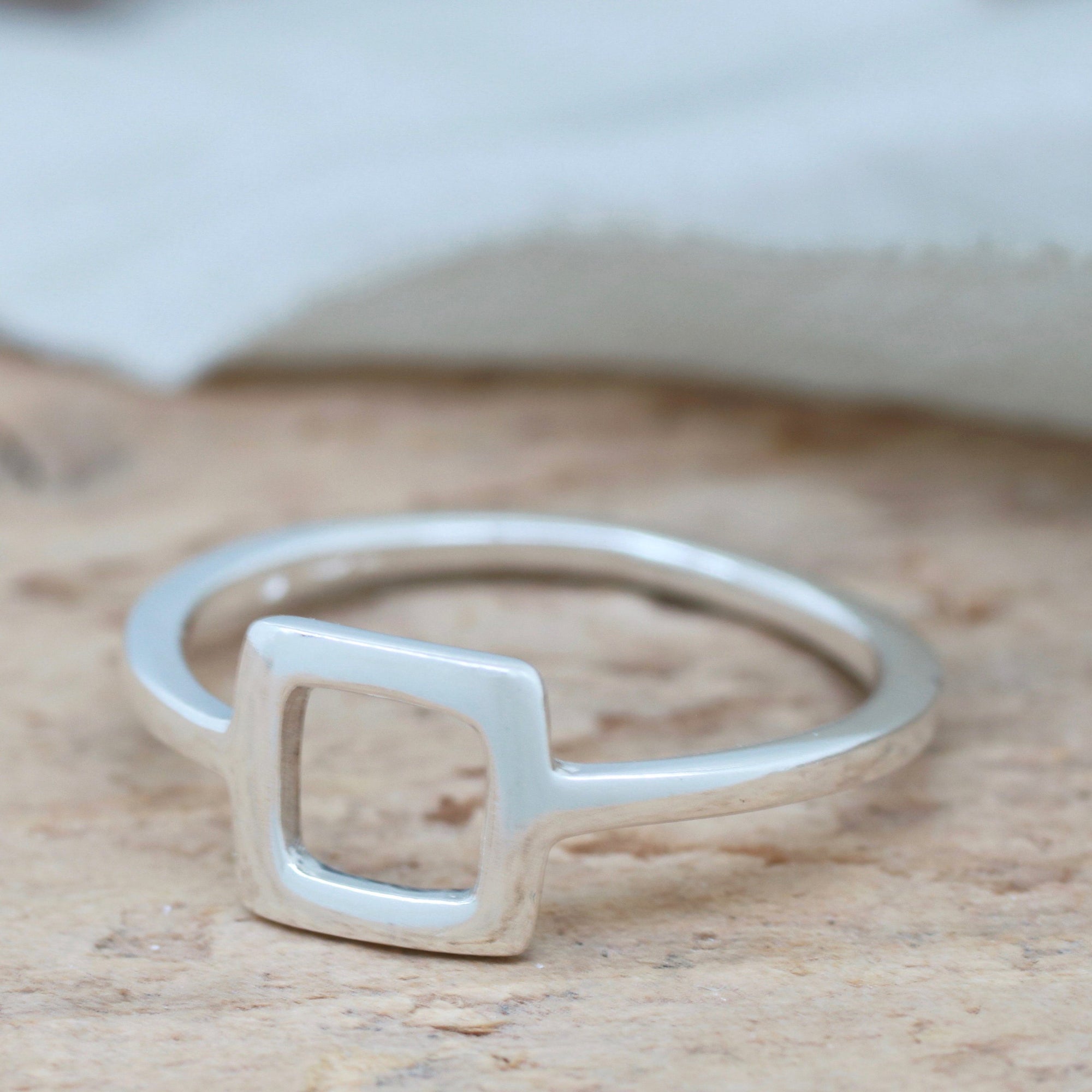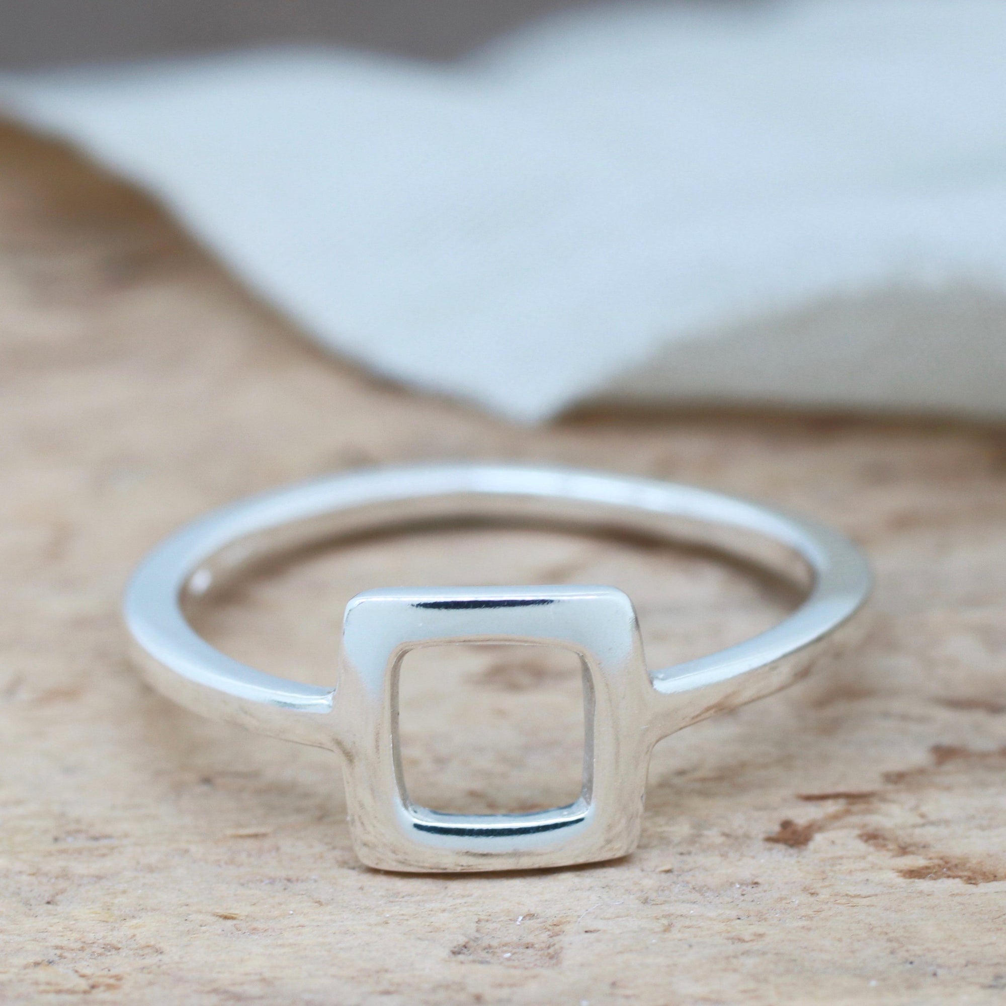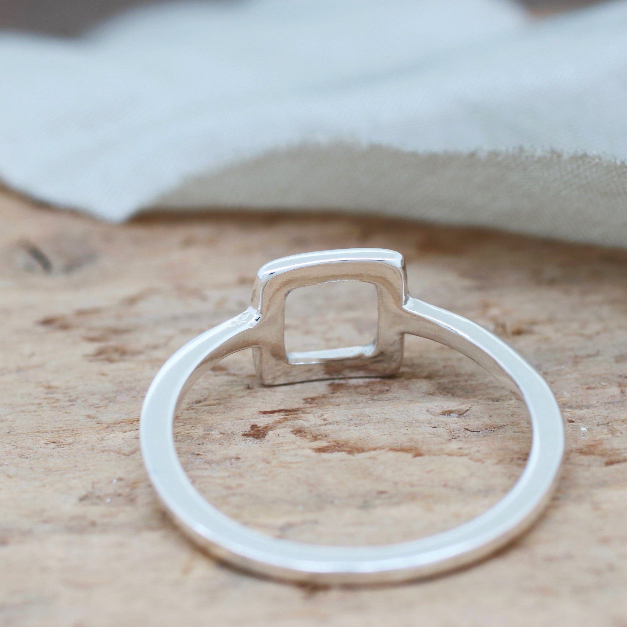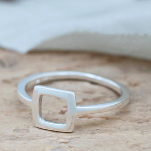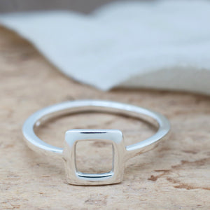 Discover the elegance of our handcrafted sterling silver square ring, featuring a sleek open square design. This square shape ring symbolises stability and balance, making it a versatile accessory for everyday wear or a thoughtful gift for celebrating personal achievements and milestones.