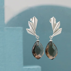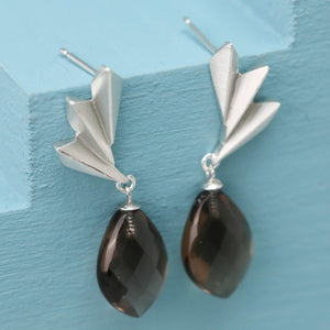 The strong architectural lines of the silver fan contrast effortlessly with the warmth of the smoky quartz gemstone, creating a pair of earrings that elevate both casual outfits and evening looks. Whether you’re searching for smoky quartz earrings for a special event, a unique anniversary gift, or an eye-catching piece to refresh your jewellery collection, these art deco statement earrings deliver elegance with a modern edge.