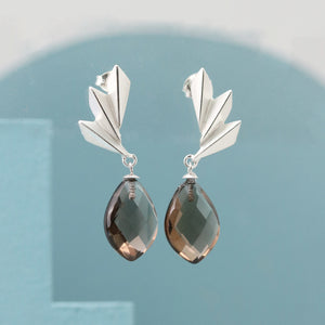 Introducing my smoky quartz earrings, a sophisticated blend of sculptural silver design and rich gemstone elegance. These art deco statement earrings feature a striking geometric fan motif handcrafted in solid sterling silver, paired with a beautifully faceted smoky quartz drop that catches the light with every movement. Designed to make an impact while remaining wearable for everyday style, these earrings offer a bold yet timeless take on Art Deco glamour.