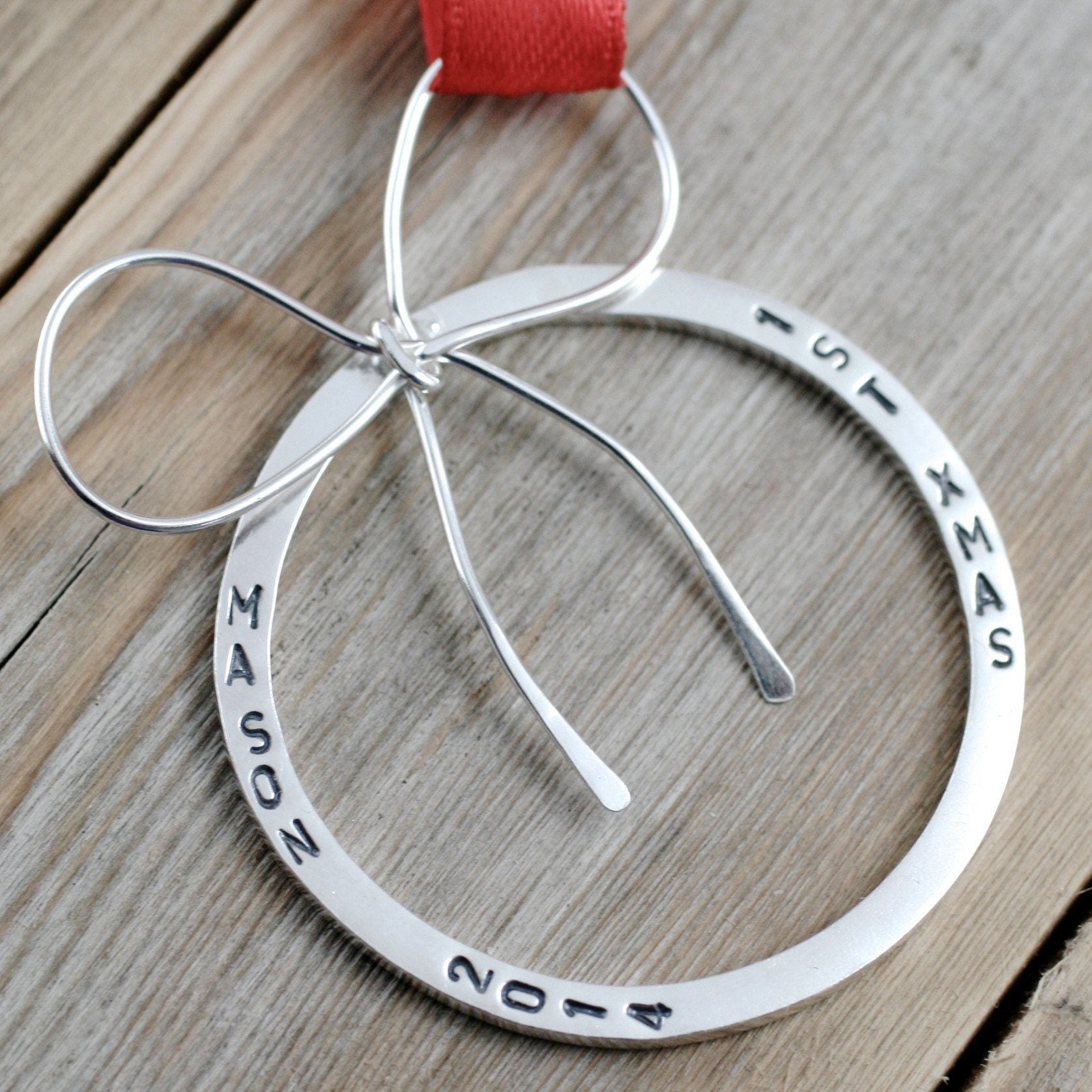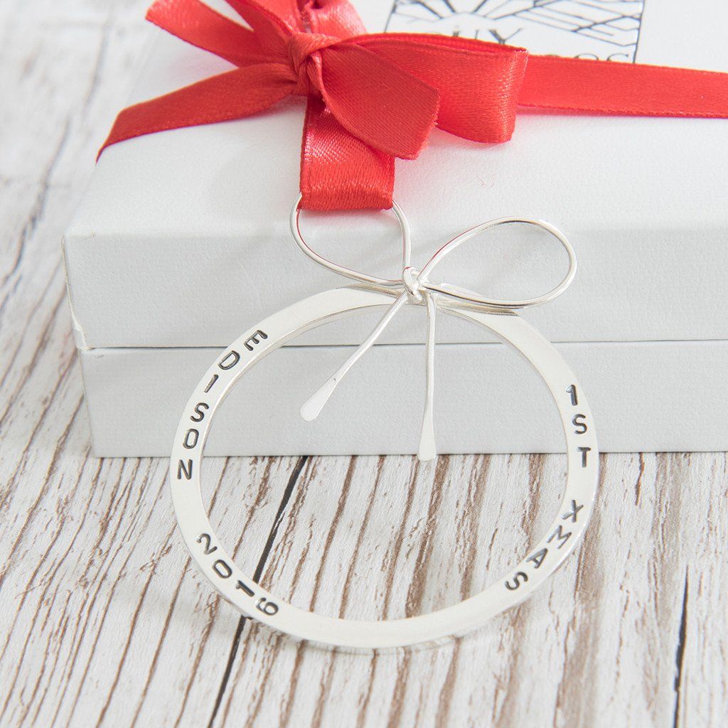 Celebrate a special milestone with this beautifully crafted Sterling Silver First Christmas Ornament. Hand-stamped with “1ST XMAS,” your chosen year, and the child’s name (up to 11 characters in uppercase), this ornament captures the magic of a baby’s first Christmas in a timeless keepsake. Made from solid sterling silver and designed to shine year after year, it’s the perfect addition to the tree for families cherishing their little one’s first festive season.
