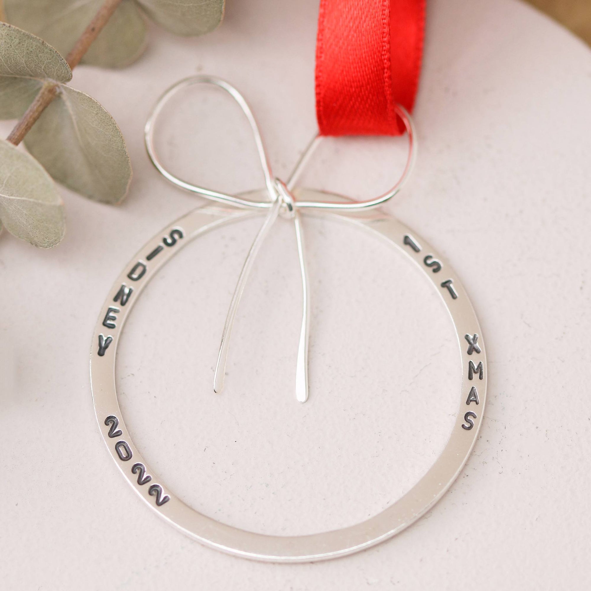 - Customisable Details: Includes “1ST XMAS,” the chosen year, and the child’s name (up to 11 uppercase letters) in hand-stamped, 2mm uppercase font.